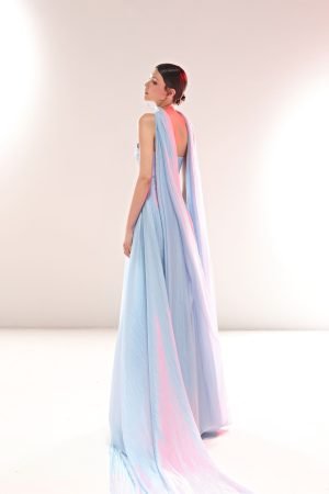 What truly sets the MIA dress apart is the intricate handwork on the lower part of the dress. Fine threads and beads are meticulously crafted to add a touch of artisanal luxury, making this piece not just a dress, but a work of art. Whether you’re attending a high-fashion event or a special occasion, the MIA dress offers a perfect blend of structure, fluidity, and luxurious detail.