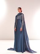 The Isla Dress also includes a long, flowing cape that drapes elegantly over the neck, adding a dramatic and graceful element to the ensemble. This exquisite detail not only enhances the dress’s visual appeal but also ensures it is perfect for any occasion, from formal events to special celebrations. With its combination of detailed craftsmanship and timeless elegance, the Isla Dress is a true standout piece